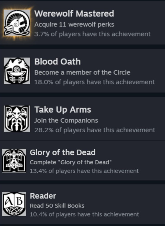 Sorry for that complete side note, I just wanted to talk about the marriage drama my Orc has. Here’s the achievements I’ve unlocked recently:
